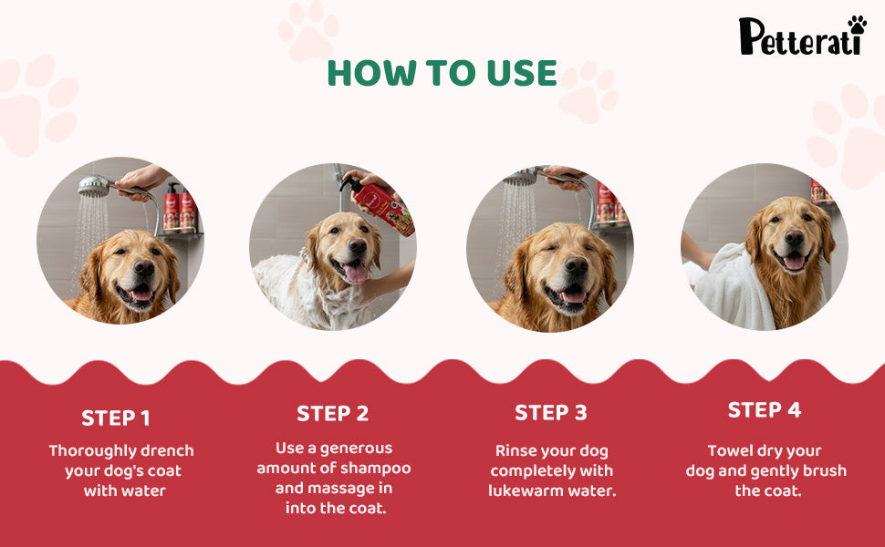 Step 1: Wet your dog’s coat thoroughly with lukewarm water