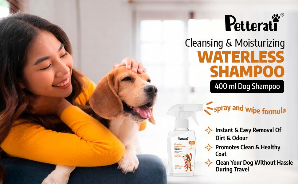 Looking for the best waterless shampoo for dogs to keep your pet clean and fresh without the hassle of rinsing? Petterati Waterless Dog Shampoo is the perfect solution! Made with natural actives, this gentle shampoo is ideal for quick cleaning on the go, whether you're traveling or during seasons when water baths aren’t practical. Suitable for all dog breeds, it keeps your pet’s coat clean and moisturized without irritation.