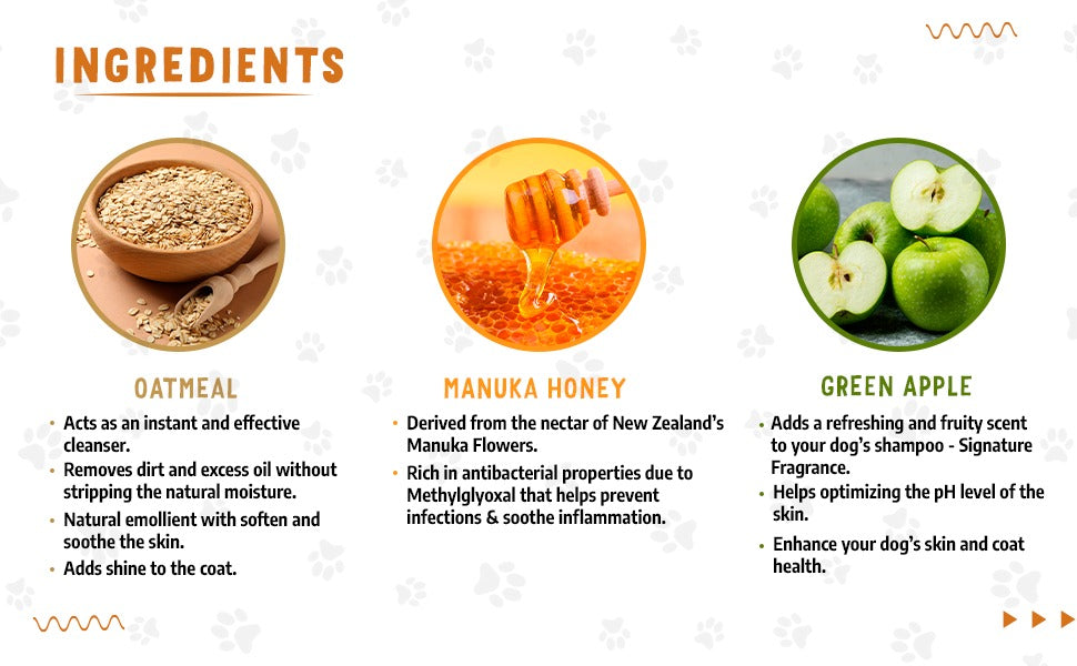 Petterati Cleansing & Moisturizing Waterless Shampoo is an easy spray shampoo that cleans and moisturises your dog’s coat without the need for water or rinsing. It is also known as dry shampoo and contains natural ingredients such as oatmeal, manuka honey and green apple to help relieve itching, irritation and allergies.